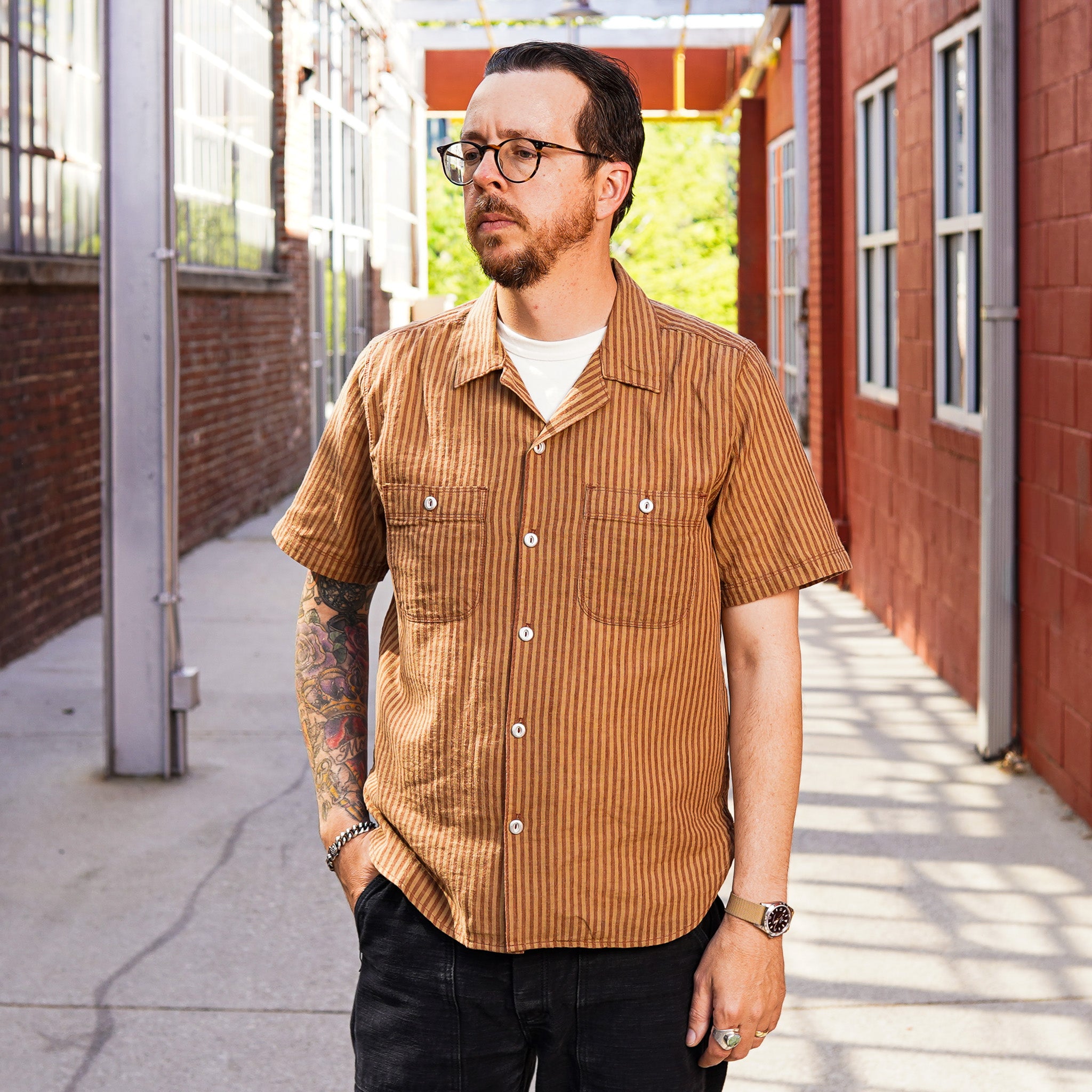 Freenote Cloth Dayton Shirt - Terracotta Stripe