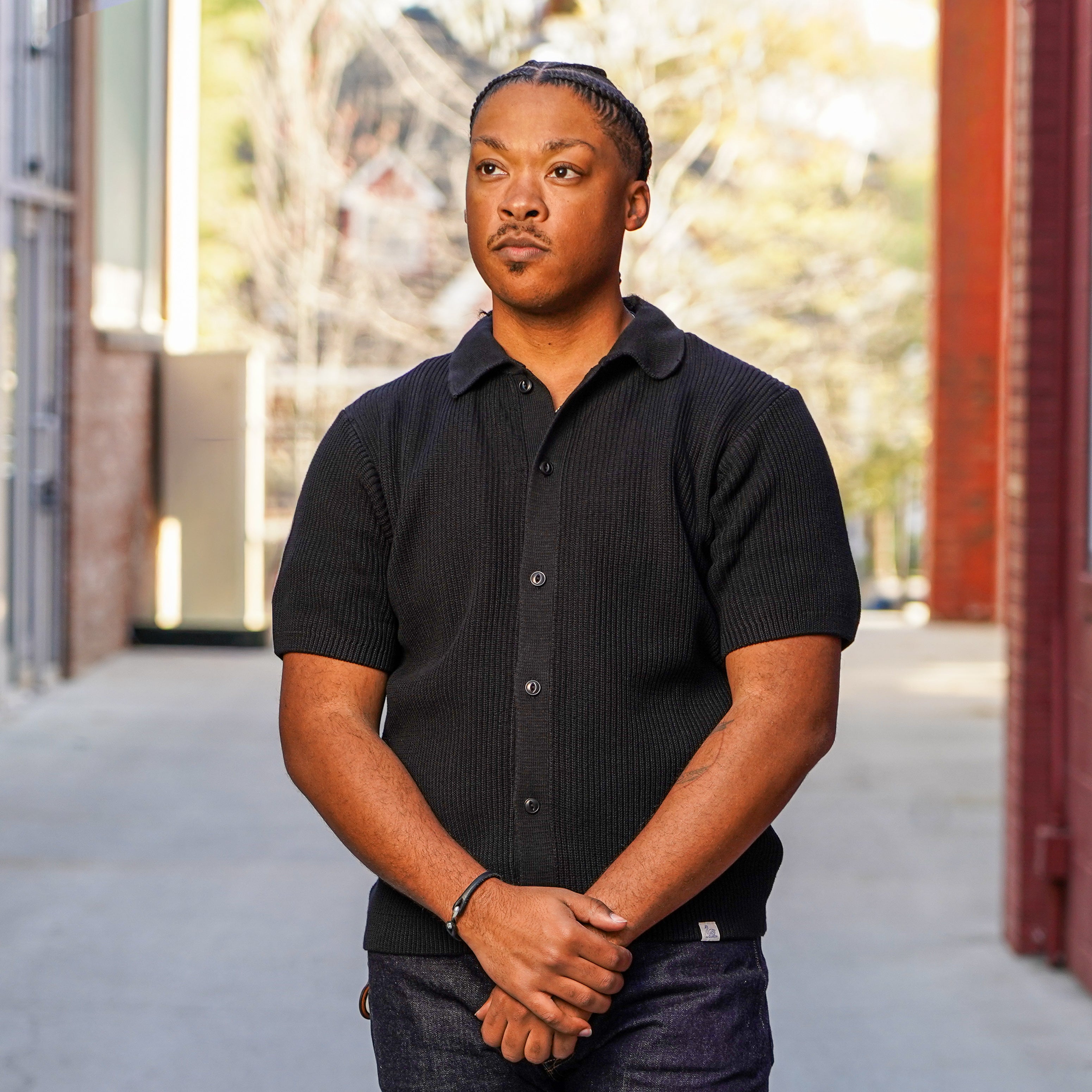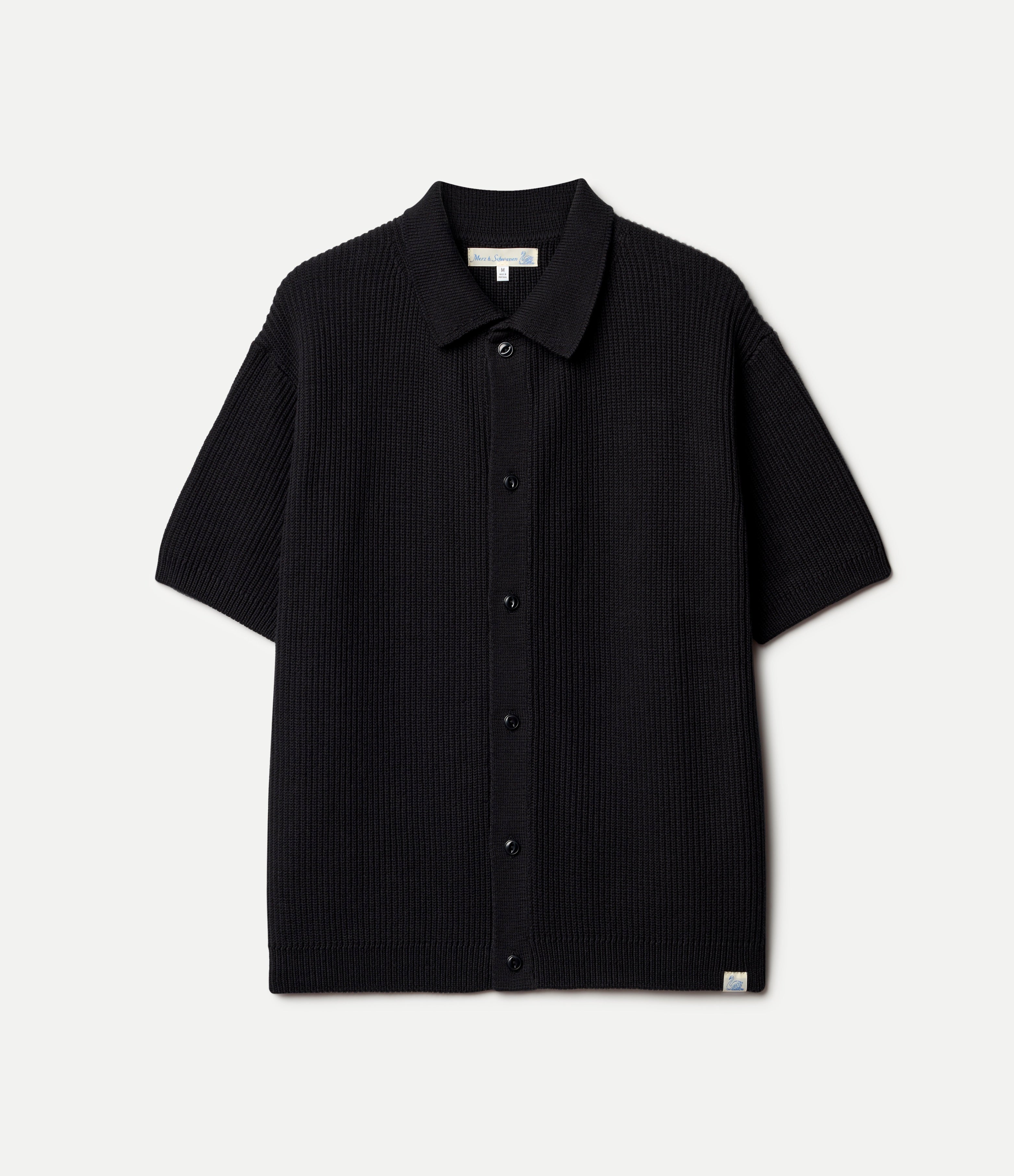 Merz b. Schwanen Ribbed Cotton Short Sleeve Shirt - Deep Black