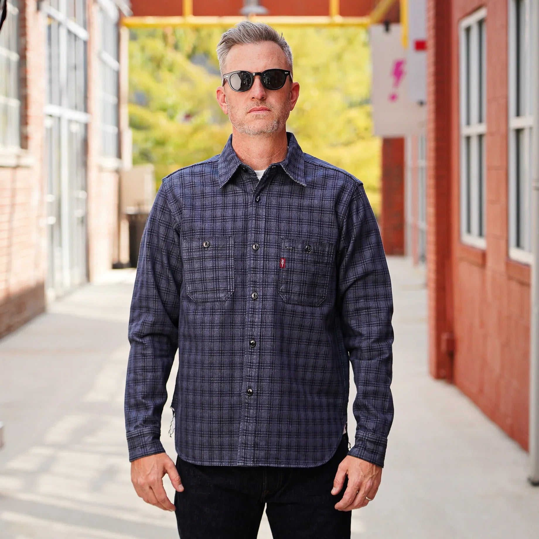 Studio D'Artisan 5734 13oz Jacquard Check Shirt - Navy