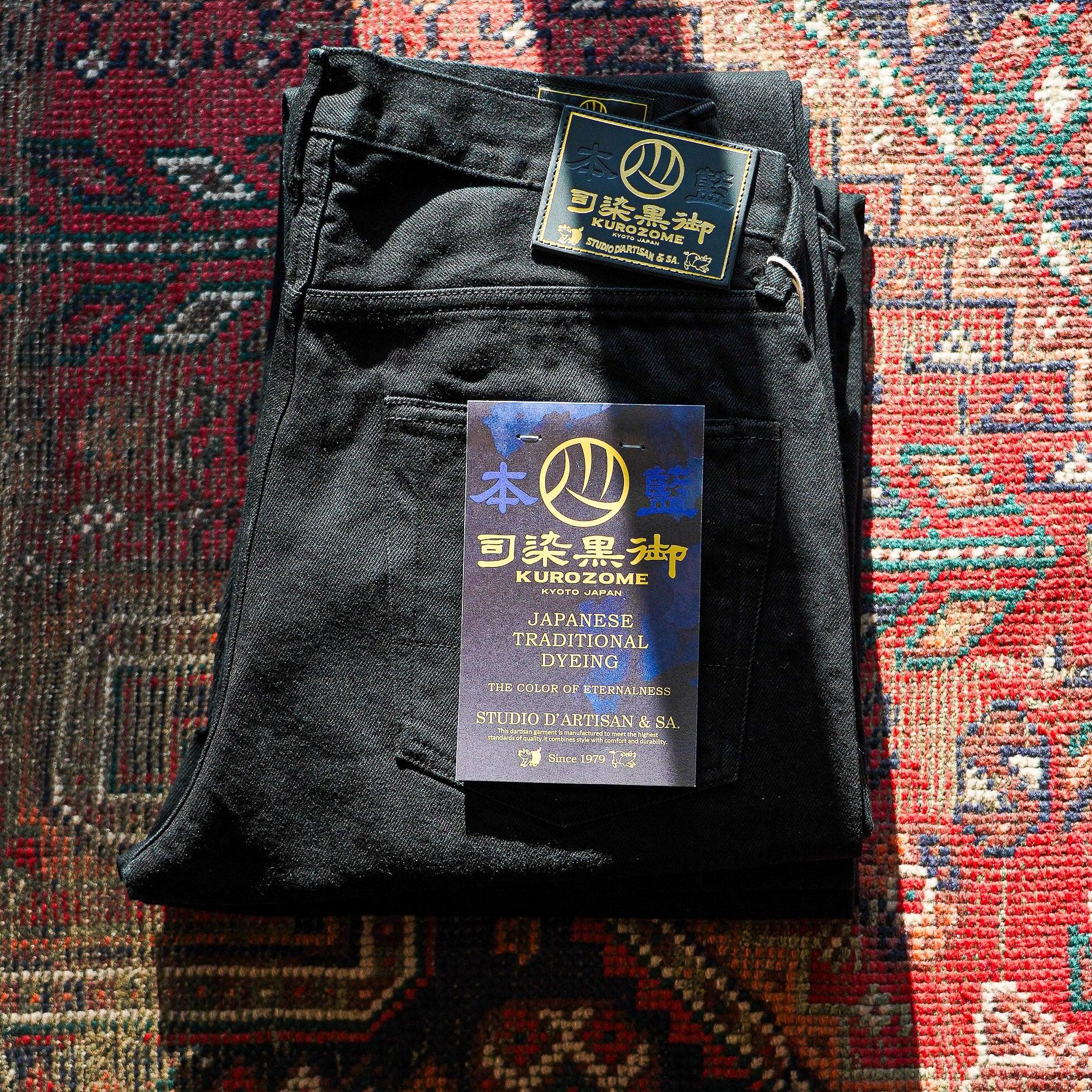 Studio D'Artisan 1899 Kyoto Black Montsuki Dyed Indigo Jeans Tapered Fit - One Washed