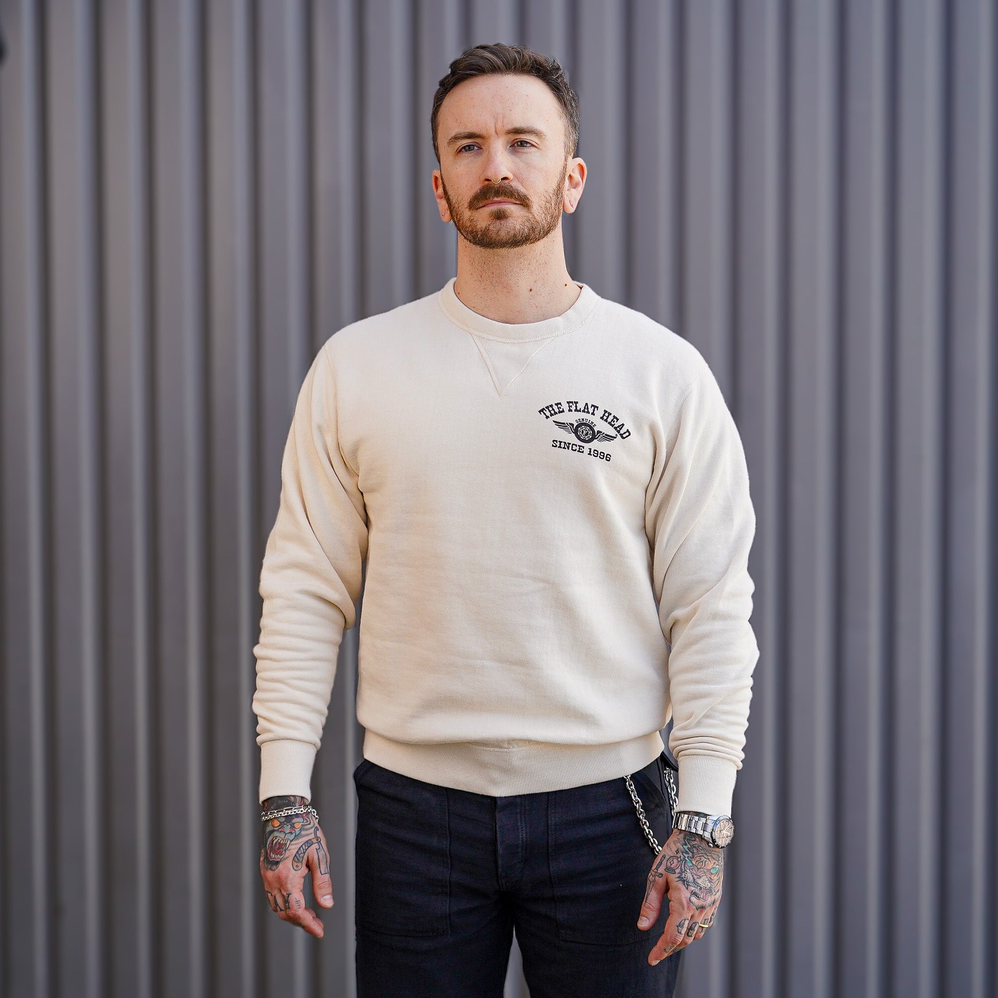 The Flat Head FN-SWC-101 Flying Wheel Sweatshirt - Ivory